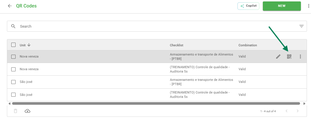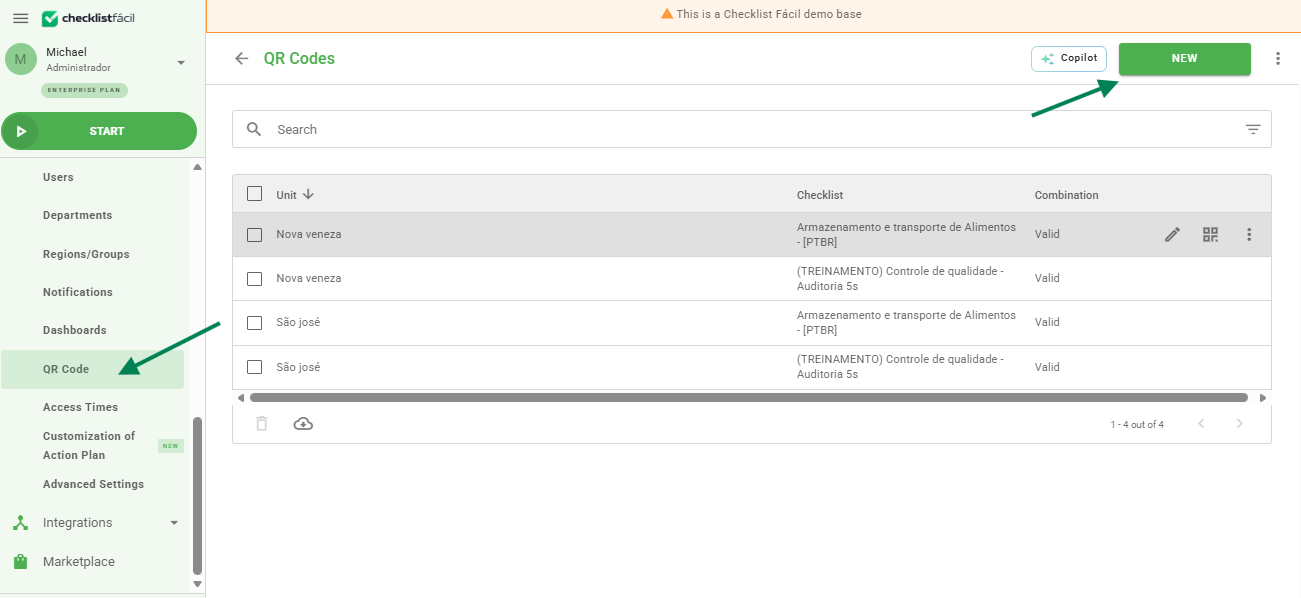 The use of QR Codes creates a shortcut for selecting the Checklist and the configured Unit, providing greater security for the data in the applied Checklist.