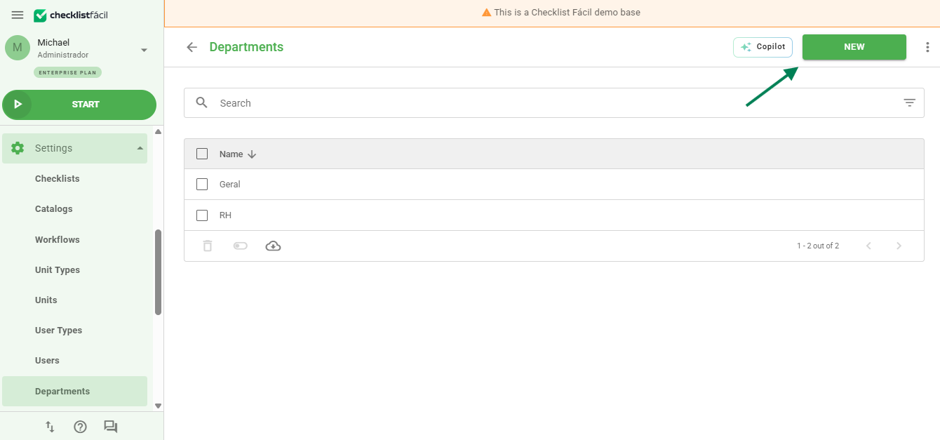 Creating departments is the best way to organize your company's areas within Checklist Fácil. Furthermore, the process is very simple.