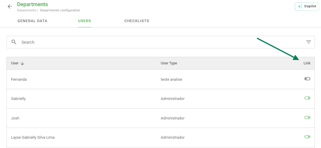 Ideal for further organizing your view within the platform, departmentalization allows you to segregate Checklists and Users according to your business areas, ensuring greater objectivity in platform use for these users.