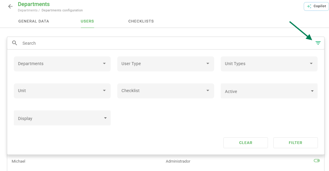 By dividing your base into departments, you have the possibility to create one or more manager users for each department, create Checklists that are relevant to only one department, limit user access to their department, among others.