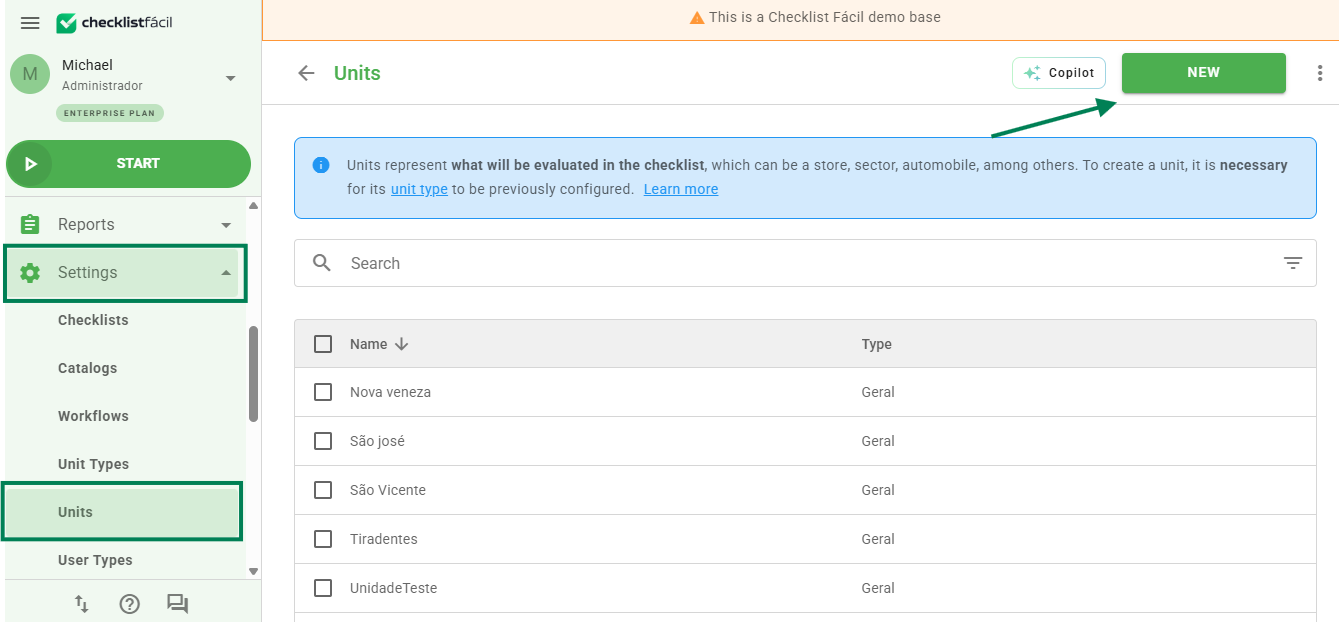 Unit refers to everything that will be evaluated in the system, which can be a location, furniture, a vehicle, among others. In this article, we will learn how to perform the registration of a new unit step by step.
