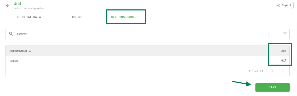 Similarly, the Regions/Groups tab is not very different from users. On this screen you will link the Regions/Groups that this Unit will be part of.