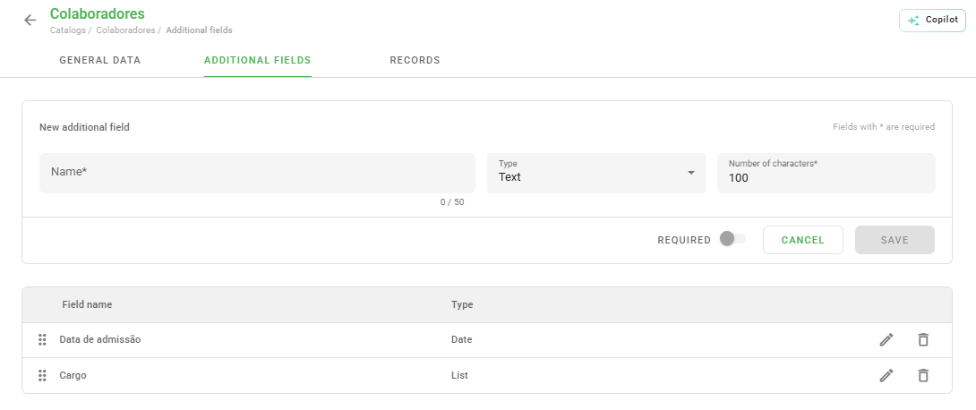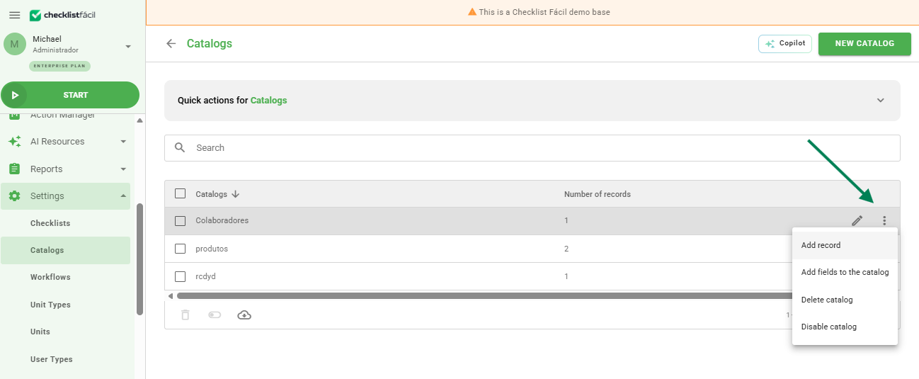 After creating your catalogs, it is time to insert your company's records. This process allows you to organize what will be evaluated during your inspections.