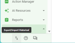 After uploading the filled file, the system will process the information. You can track whether the import was successfully concluded or if there was an error through the Import History, located in the footer of the left menu.
