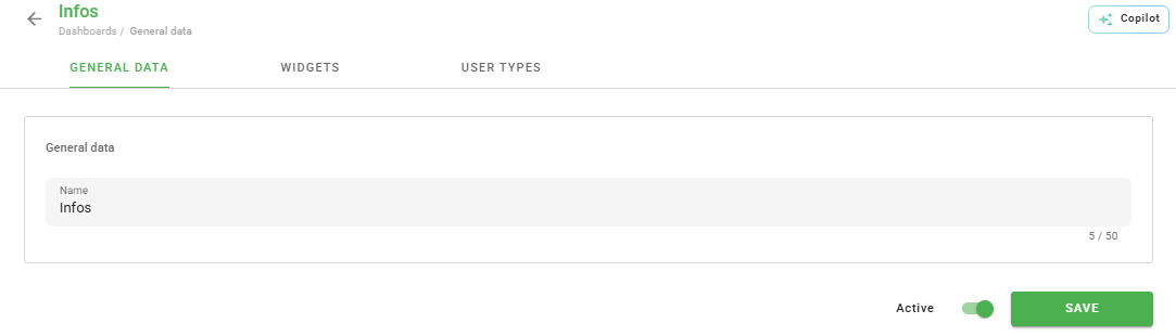 Upon entering the edit mode, you can change all Dashboard information, including the Widget models and configured Links.