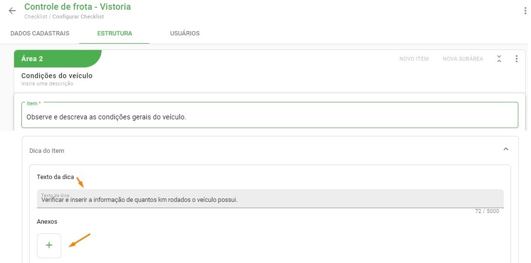 The option to insert the tooltip is available when creating a new item or editing an existing one in Settings > Checklists > Structure.