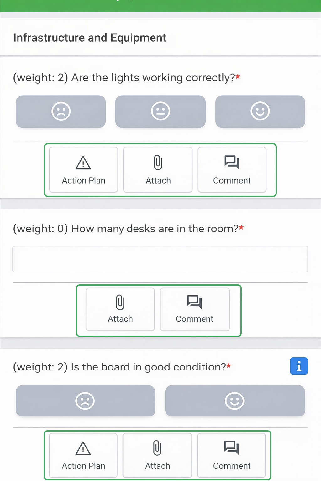 When creating or editing a checklist, it is possible to insert add-ons into the items. This functionality allows users to add rich information and collect more detailed data during the inspection.