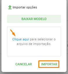 After filling it out, save the spreadsheet in CSV format. Then, again in Import Options, select the file saved on your device and click on Import, to start the import to the system.