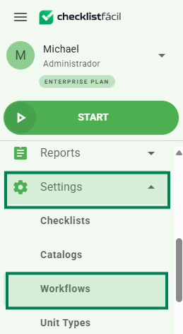 Step 1: In the left side menu, access the Settings tab and click on Workflows.