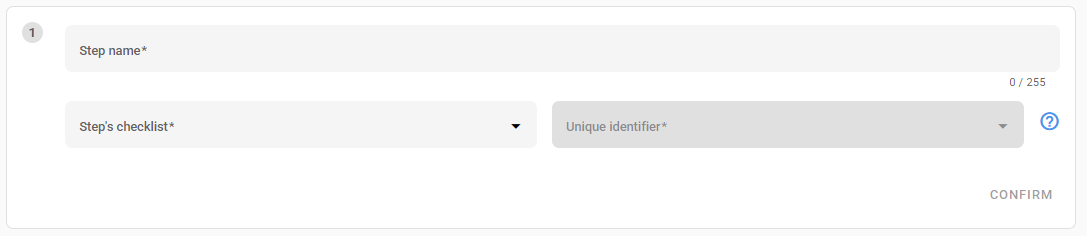 - Unique identifier: A checklist item (e.g., License Plate, Tax ID, Short Text) whose response will identify this flow. The item must be mandatory and non-dependent.