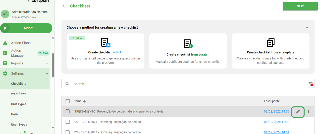 To set up your checklists using this funcionality, follow the steps below: