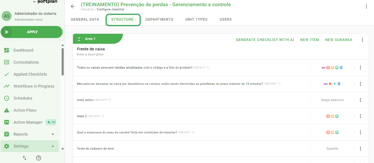 (Settings > Checklist > Edit > Structure)