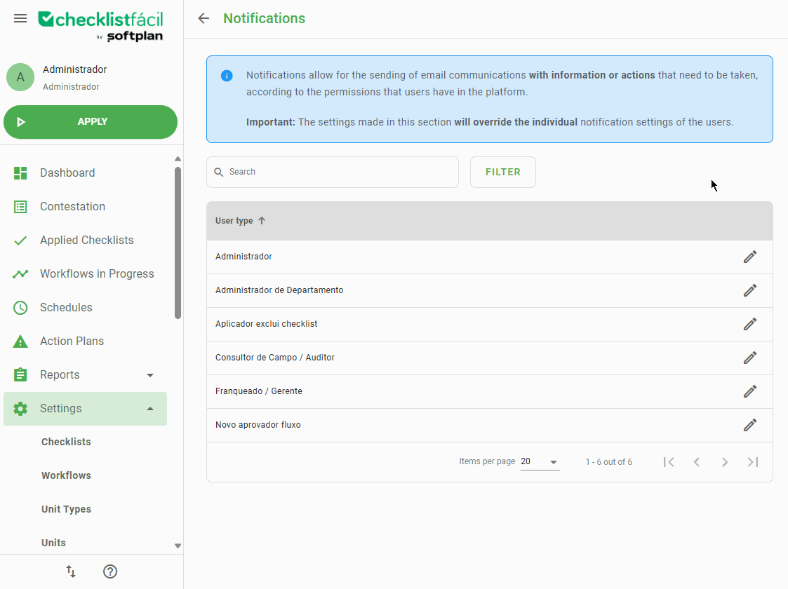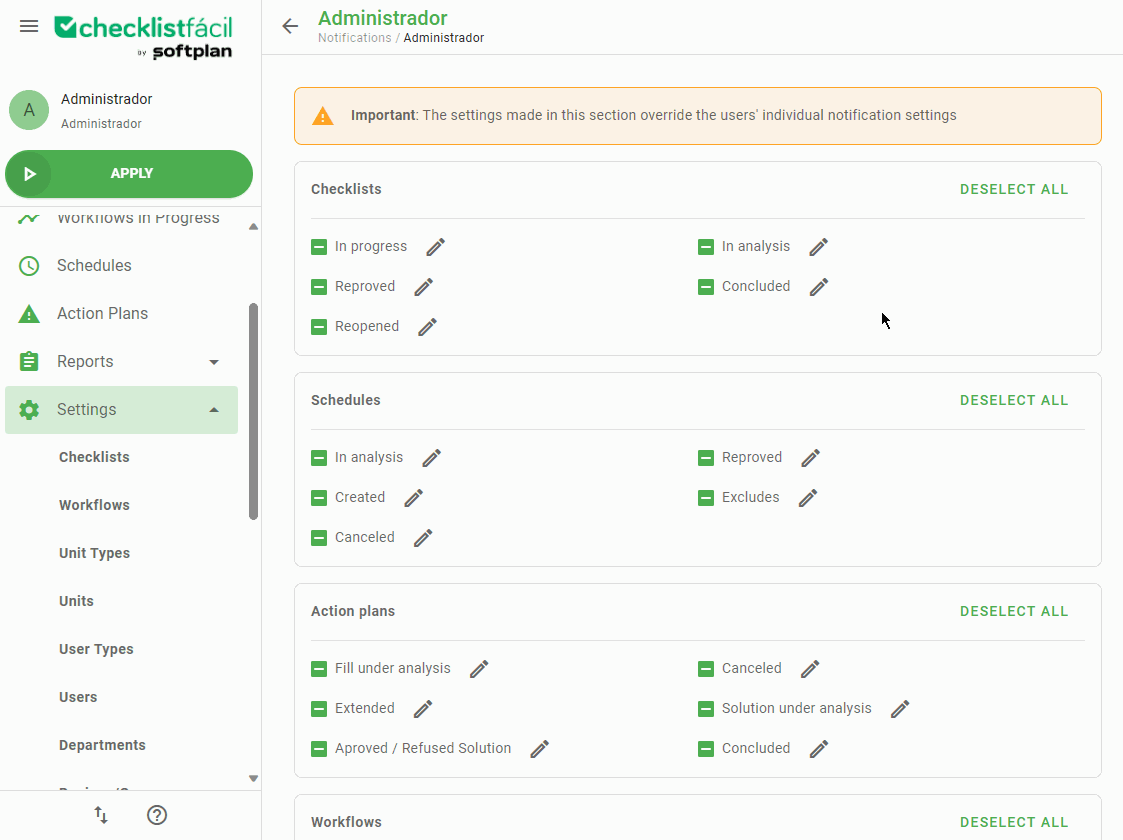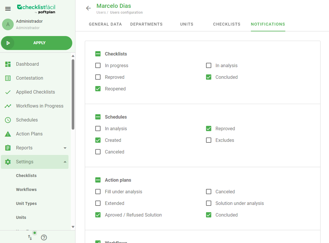 The notifications sent by e-mail are useful to communicate to the Checklist Fácil users about actions that need to be done. These notifications are many types, from concluded checklists, to new schedules, schedules that are about to finish the programming date and Action Plans updates.