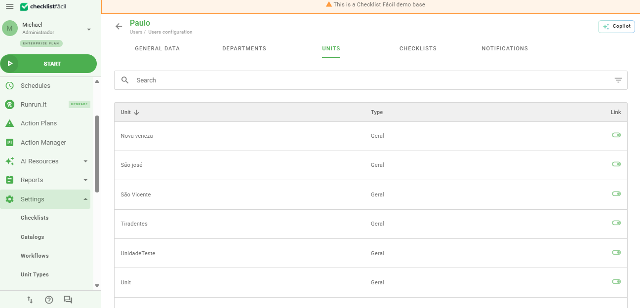 The user should only receive emails from questionnaires linked to the units they are associated with. Mandatory, the user must be linked to both the Checklist and the unit for the delivery to be performed.