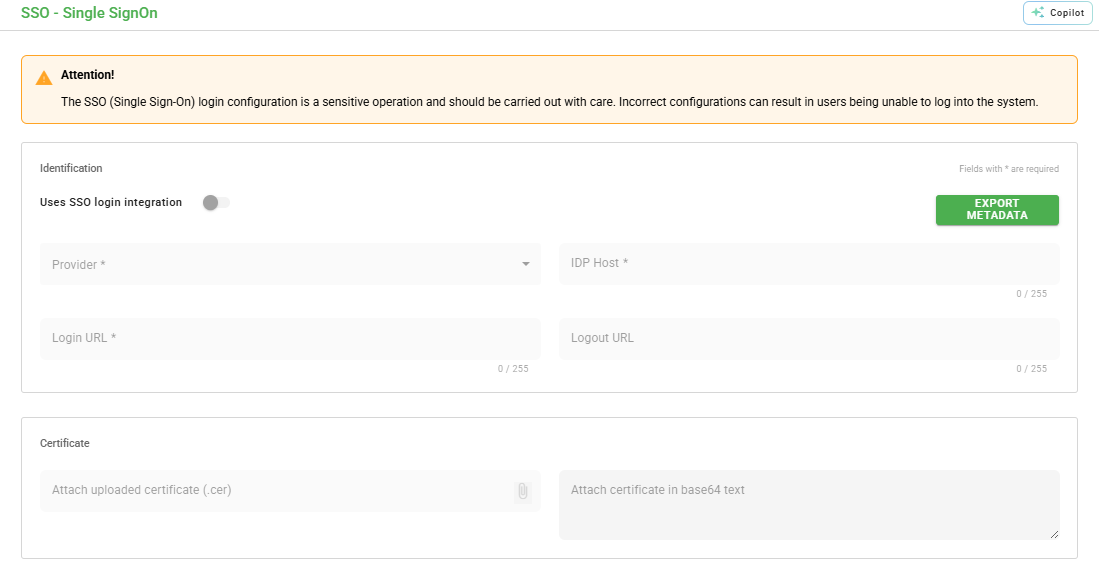 → Note: Ensure that your user has Administrator permissions and the contracted plan allows SSO integration.