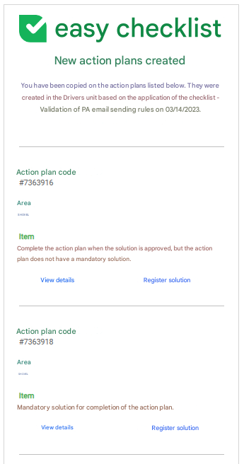 Emails regarding the creation of action plans are now consolidated. With this update, a single notification is sent for multiple action plans created in the same evaluation, optimizing your inbox.