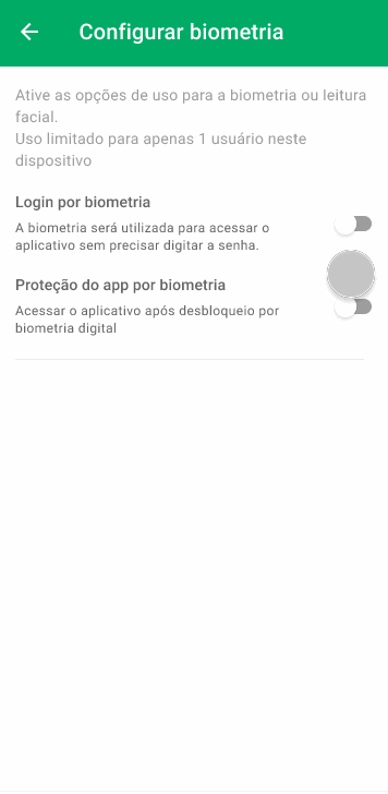 Note: It will only be possible to set up biometric access for one user at a time. So, if there are several simultaneous users on the same device, you can choose one of them to be accessed by biometrics, while the others will continue to be authenticated by password.