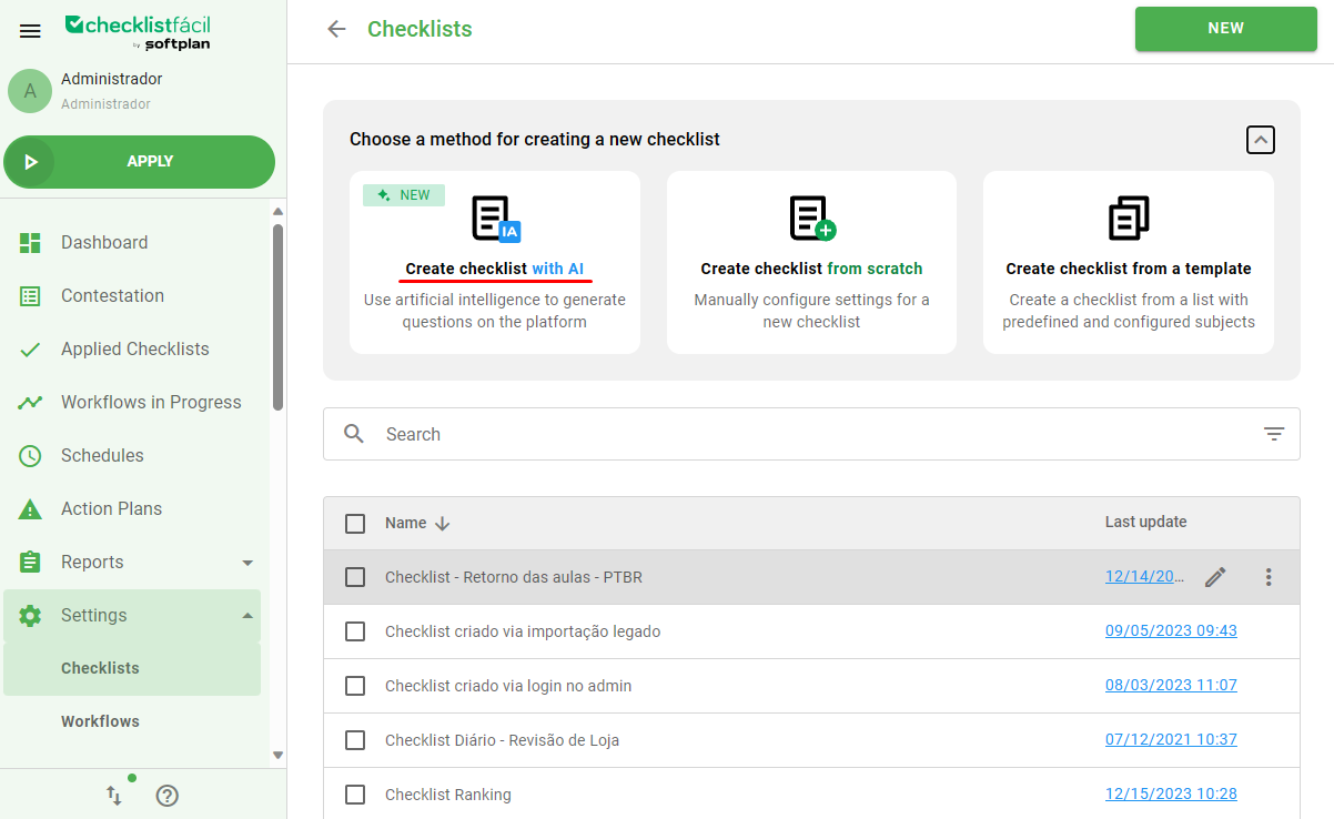 When creating a new checklist, you can select the option Create checklist with AI.