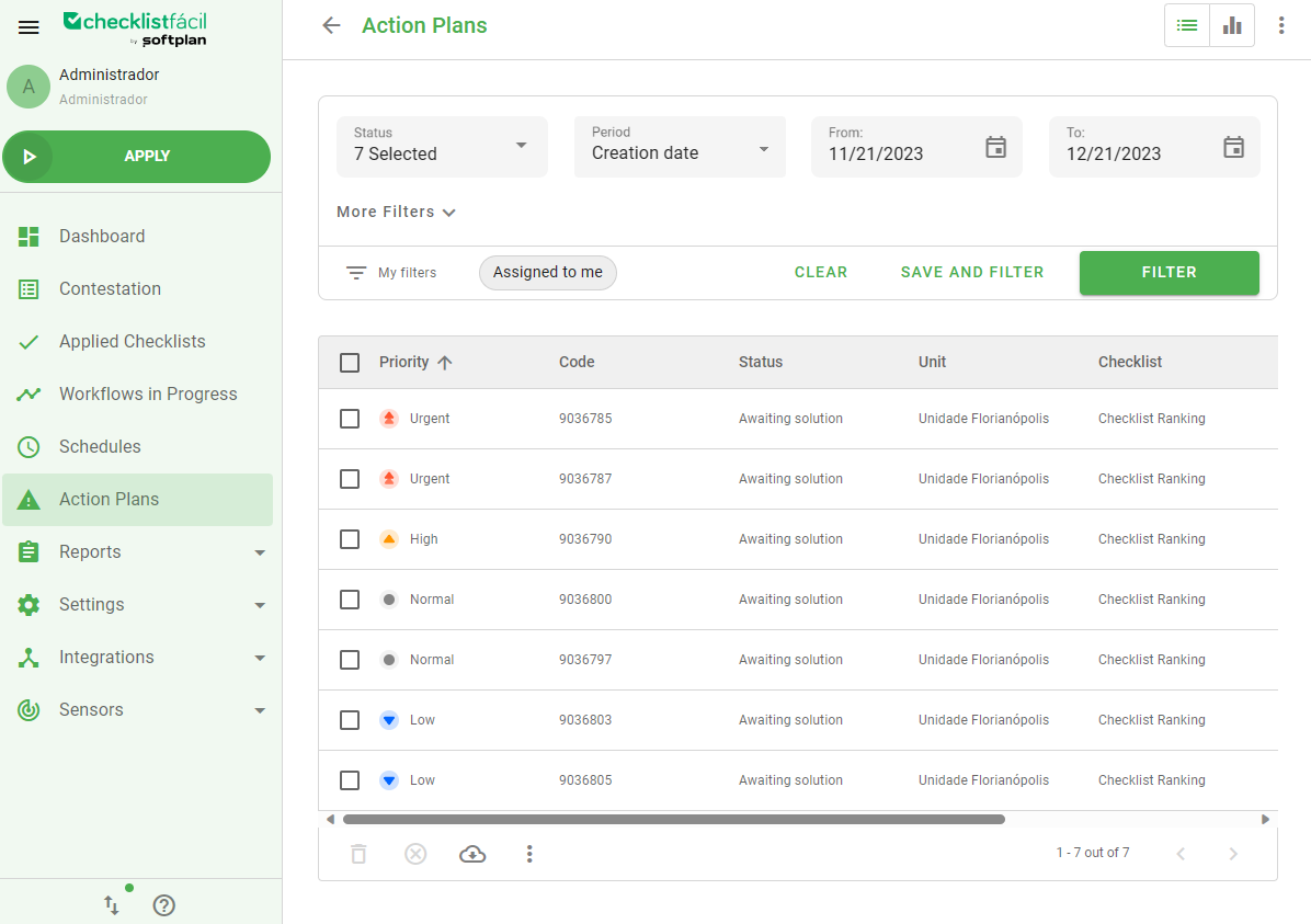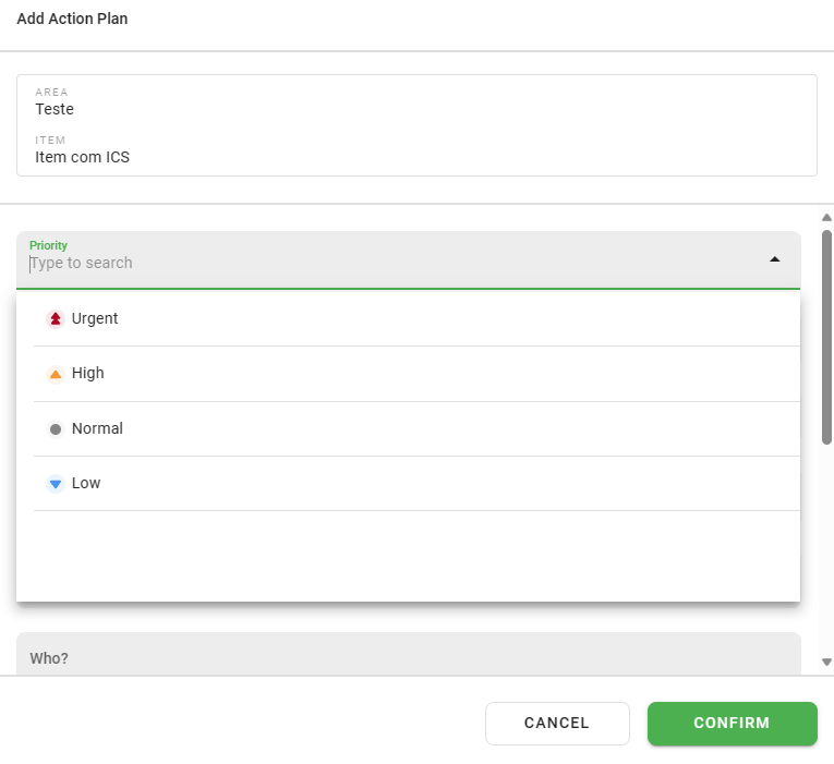 The priority functionality allows for the creation of Action Plans with different urgency levels, in addition to displaying and filtering these priorities in the listing. This way, you can maximize your productivity, with better use of resources such as time and attention.
