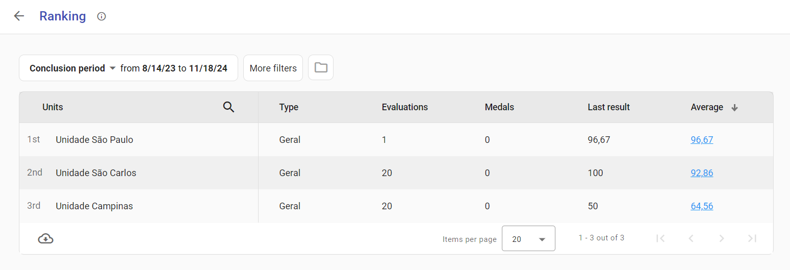 It is possible to view a podium based on the results achieved in each unit through the unit ranking.