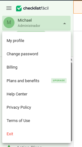 - Terms of use: access the Checklist Fácil terms of use through this tab.
