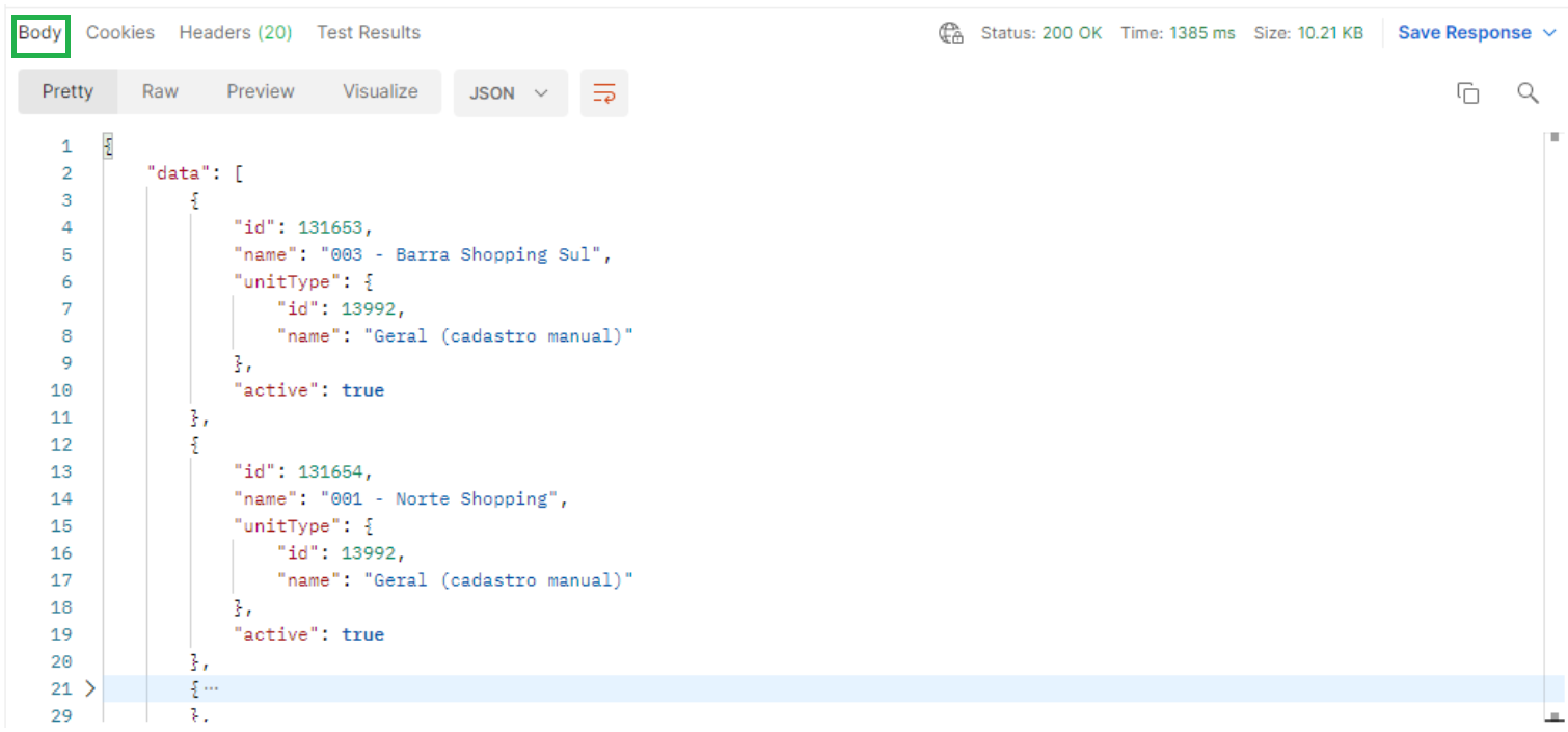 In this way, you will successfully perform the request to list units: