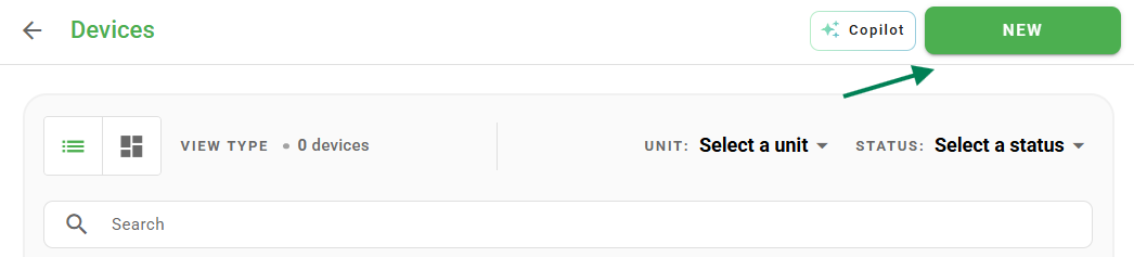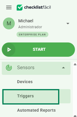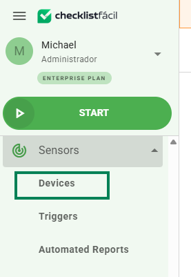 To configure a new device, go to the left side menu of Checklist Fácil, click on Sensors and then on Devices.