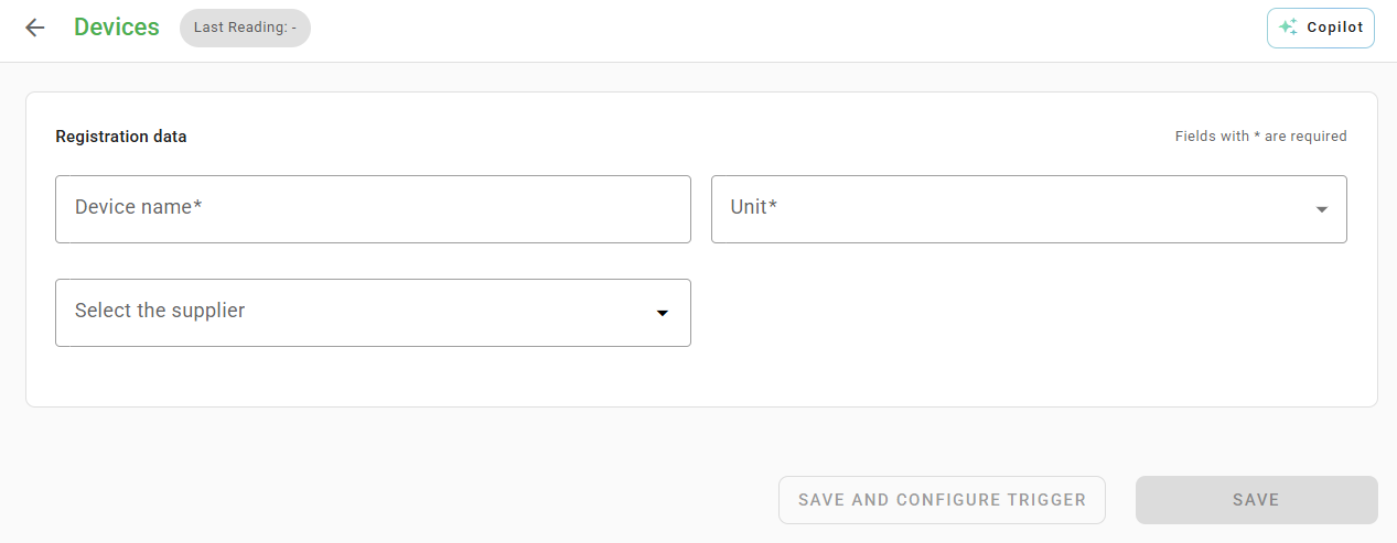 On the screen that opens, you must enter the device name, the unit to which it belongs, and the sensor supplier: