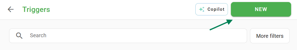 To configure a new trigger, go to the left side menu and click on Sensors and then on Triggers.
