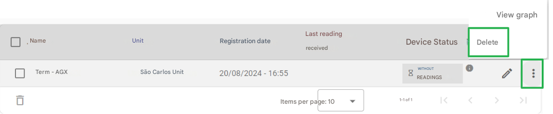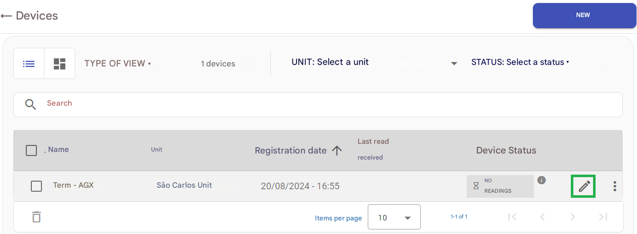 To perform sensor management just go to the left side menu of the system and click on Sensors and then on Devices. On the page that opens, it is possible to register new sensors, as well as edit or delete existing ones.