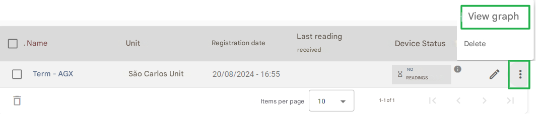 On the devices page, it is possible to observe the collected data for analysis and reports.