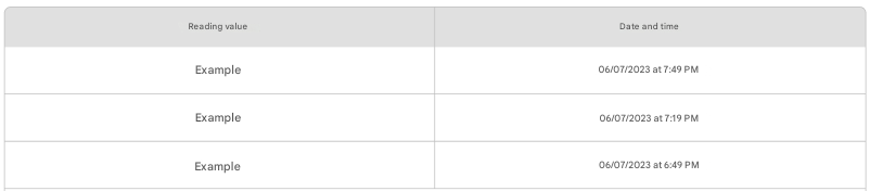Below the filters you will find the chart and the data entry list, with the reading value and the moment the reading was performed.