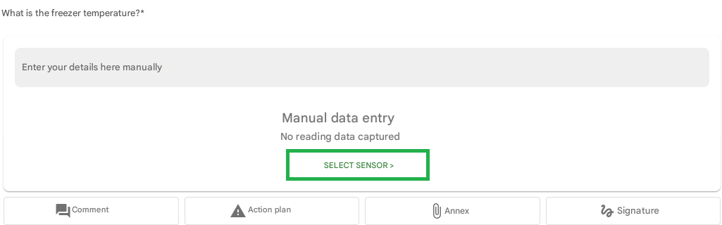 Once the item type is configured, when starting a checklist application, the option to Select Sensor to collect the latest reading will be displayed: