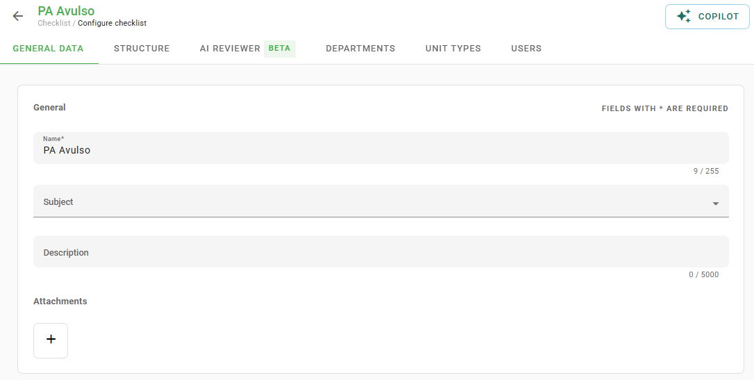 The editing page will open, similar to the creation of standard checklists: