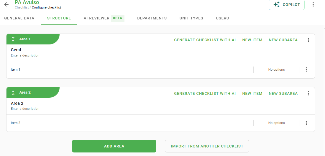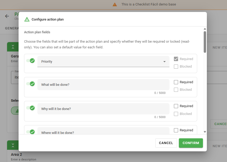 This structure serves as the unique base for using the Standalone Action Plan. Within it, you can configure questions and adjust behavior according to your operation's needs.