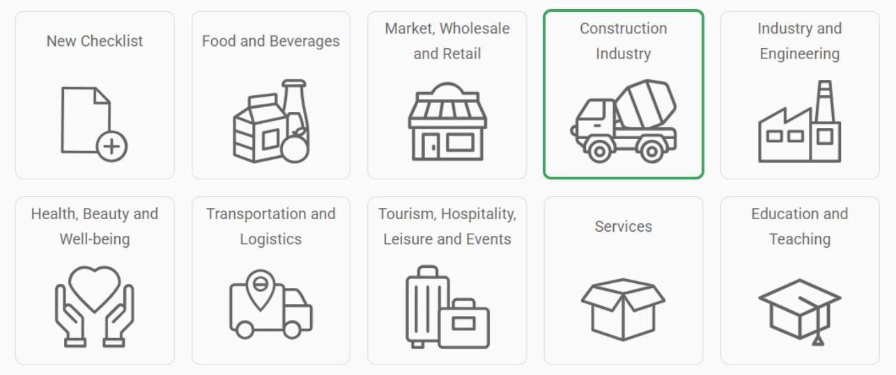 - (4) Create checklist from template: This option allows you to reuse existing checklist templates, as in the Construction Industry example: