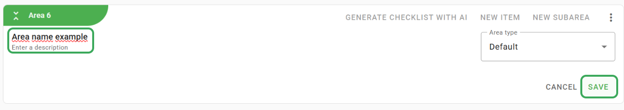 Step 1: To start creating your checklist, click Add Area.