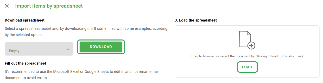 You will be redirected to a new page where you can download a blank spreadsheet template and fill it out as you wish. We recommend using Microsoft Excel or Google Sheets to edit, and do not rename the spreadsheet to avoid errors.