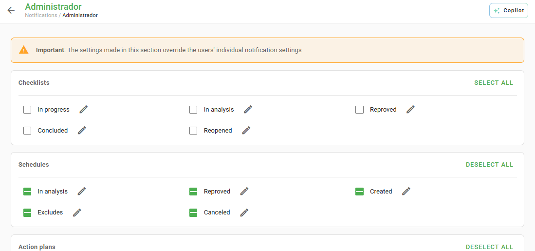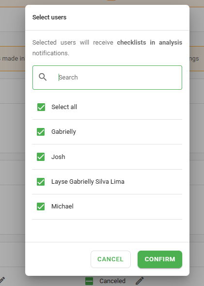 These notifications must be in accordance with the permissions that users have within the Checklist Fácil system.