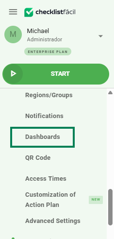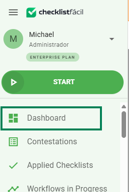 Dashboards can be accessed through the left side menu of the Checklist Fácil system: