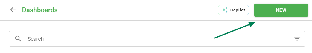 Step 2: In the Dashboards tab, click the New button in the upper right corner of the screen.