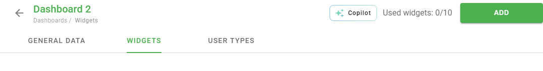 Each dashboard allows the insertion of up to 10 customized widgets.