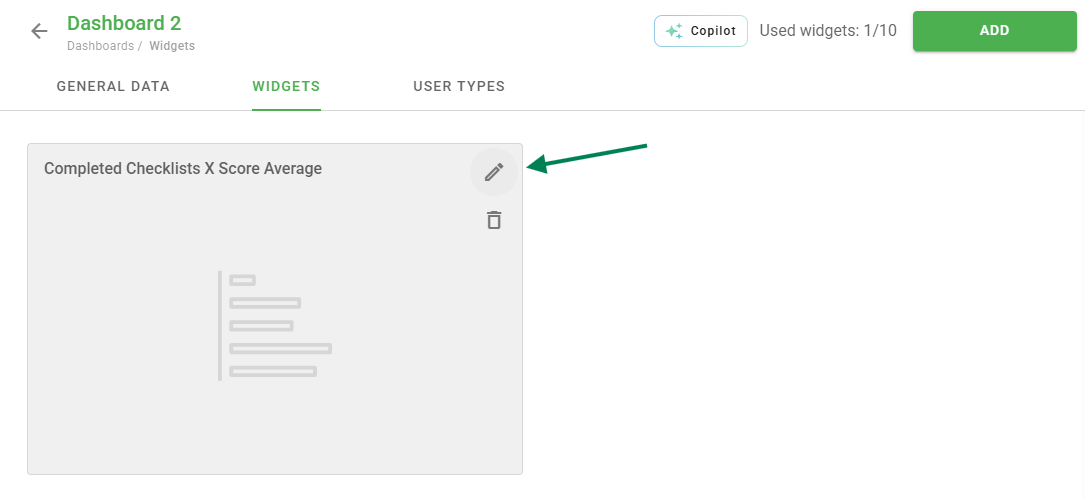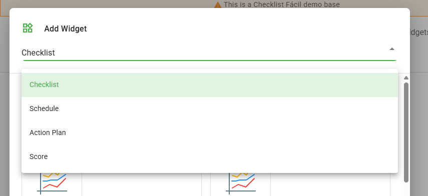 It is possible to add widgets related to checklists, schedules, action plans, and scores.