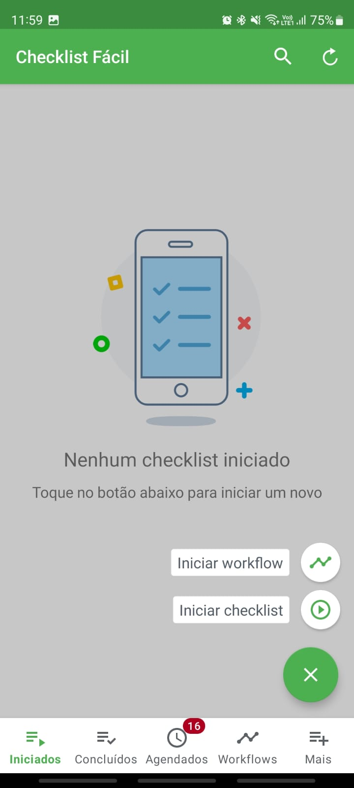 Step 1: In the app, click on the "check" icon (bottom right corner) and select Start checklist.
