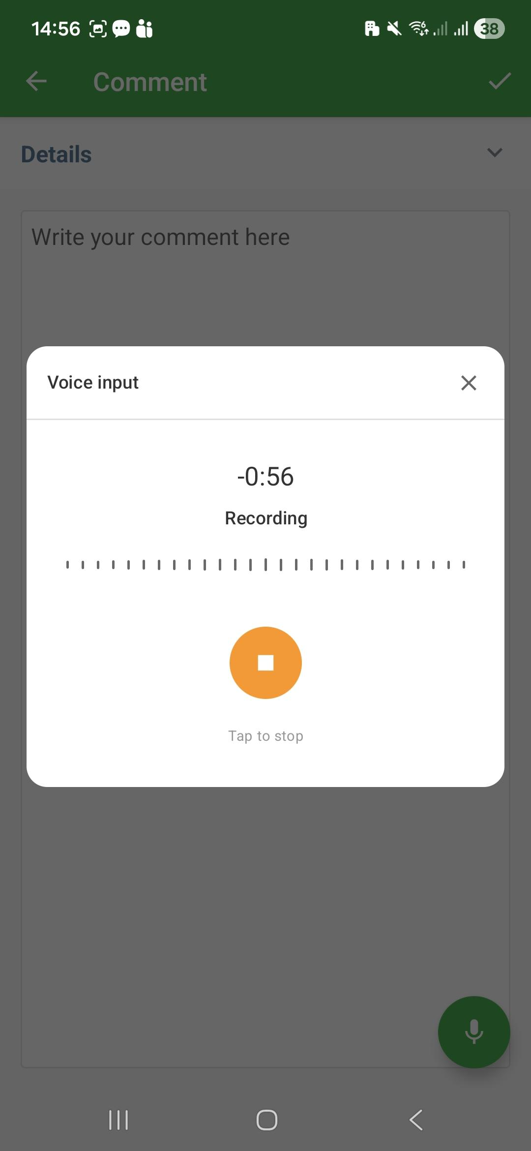 - Long text fields and Comments: up to 60 seconds of audio.