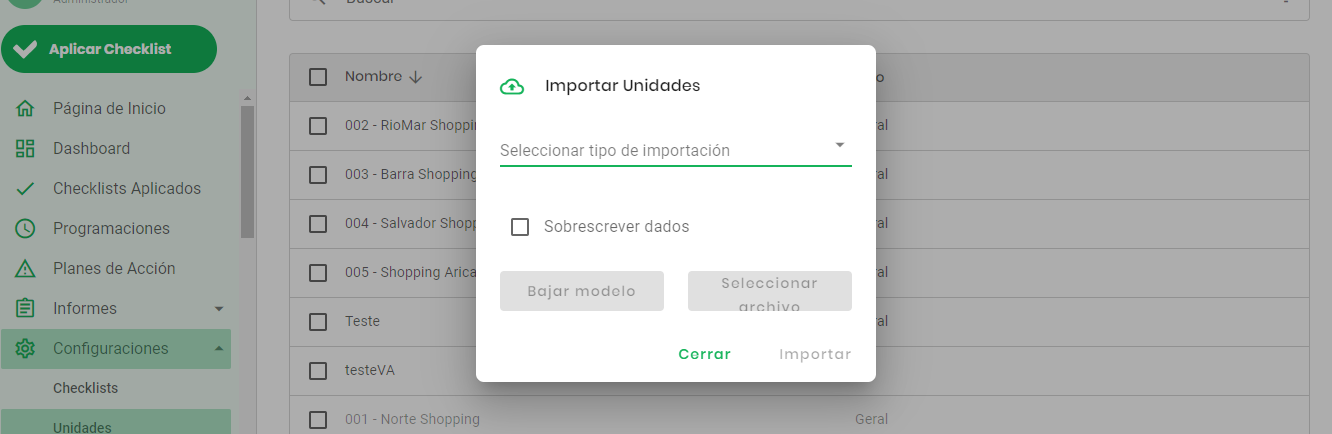 Para importar unidades, el camino es similar. Accediendo al menú de los tres puntos en la pantalla de Unidades, haga clic en Importar.