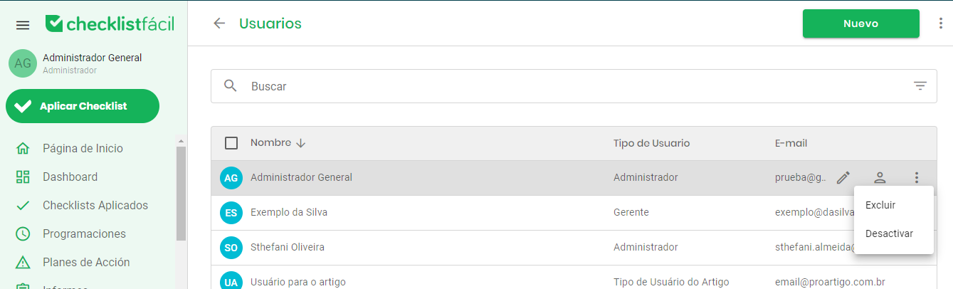 Al acceder a la pantalla de Configuraciones de Usuarios, existe la posibilidad de editar, desactivar y eliminar Usuarios, además de realizar acciones masivas para optimizar la gestión de tu base.