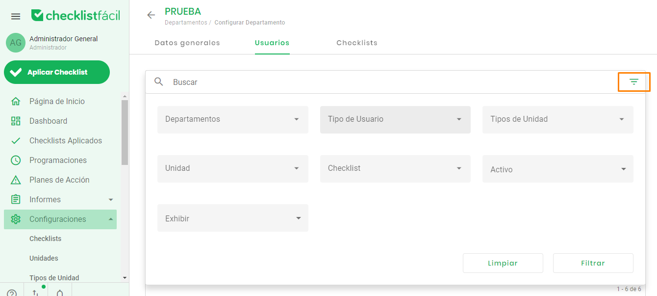 También es posible crear varios filtros al seleccionar sus usuarios y Checklists: