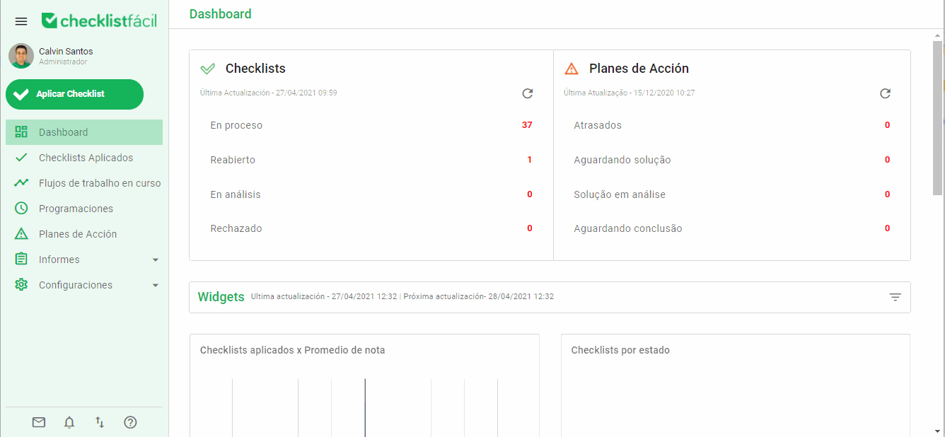 Y luego, los Checklists que estarán disponibles para este departamento.