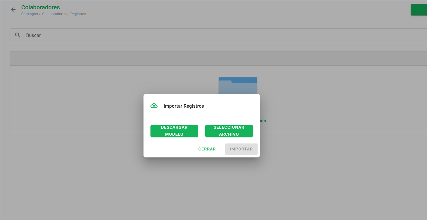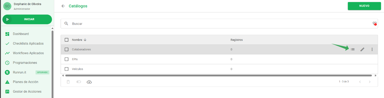 La importación de registros nos ayuda a agilizar el proceso de creación de los catálogos. Acceda a Configuración > Catálogos, pase el mouse sobre el catálogo en el que desea importar la información y haga clic en el ícono de lista.